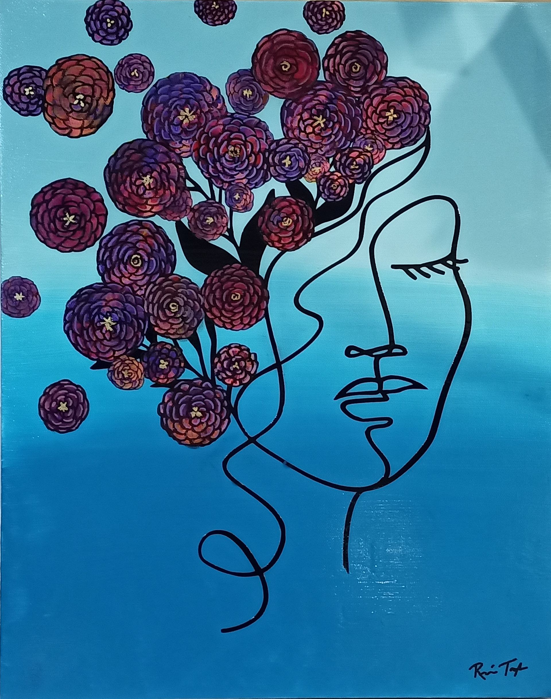 I consider my art to be both acrylic painting and mixed media, as I prefer to embellish some of my work with metal, glass or vinyl and apply it to multiple surfaces- from canvas, to wood, ceramic, and glass. This art form is perfectly flexible to allow me to be my most creative.