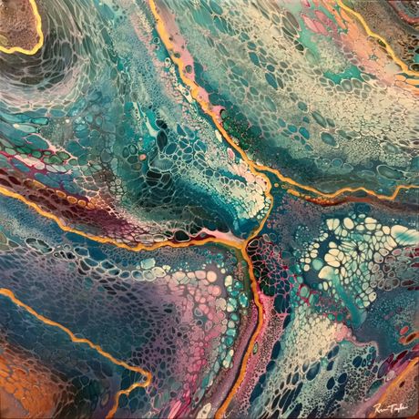 Acrylic pour painting is abstract in nature, so I allow the admirer to see what they want to see in each piece and choose not to label or name it as I don't want to influence that vision.